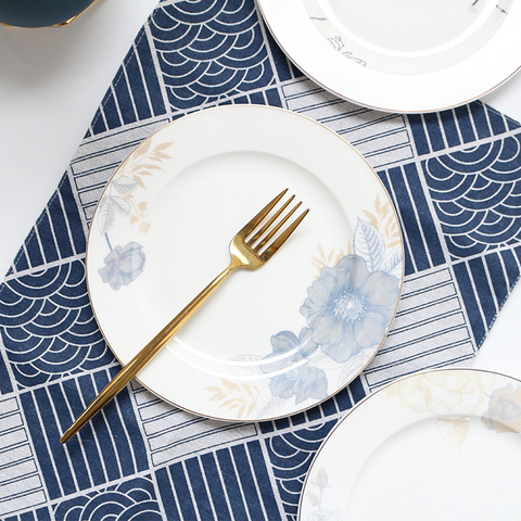 فاخرة كلاسيكية على الطراز الصيني العظمي بحافة ذهبية من الخزف والسيراميك مصنوع يدويًا للهدايا
